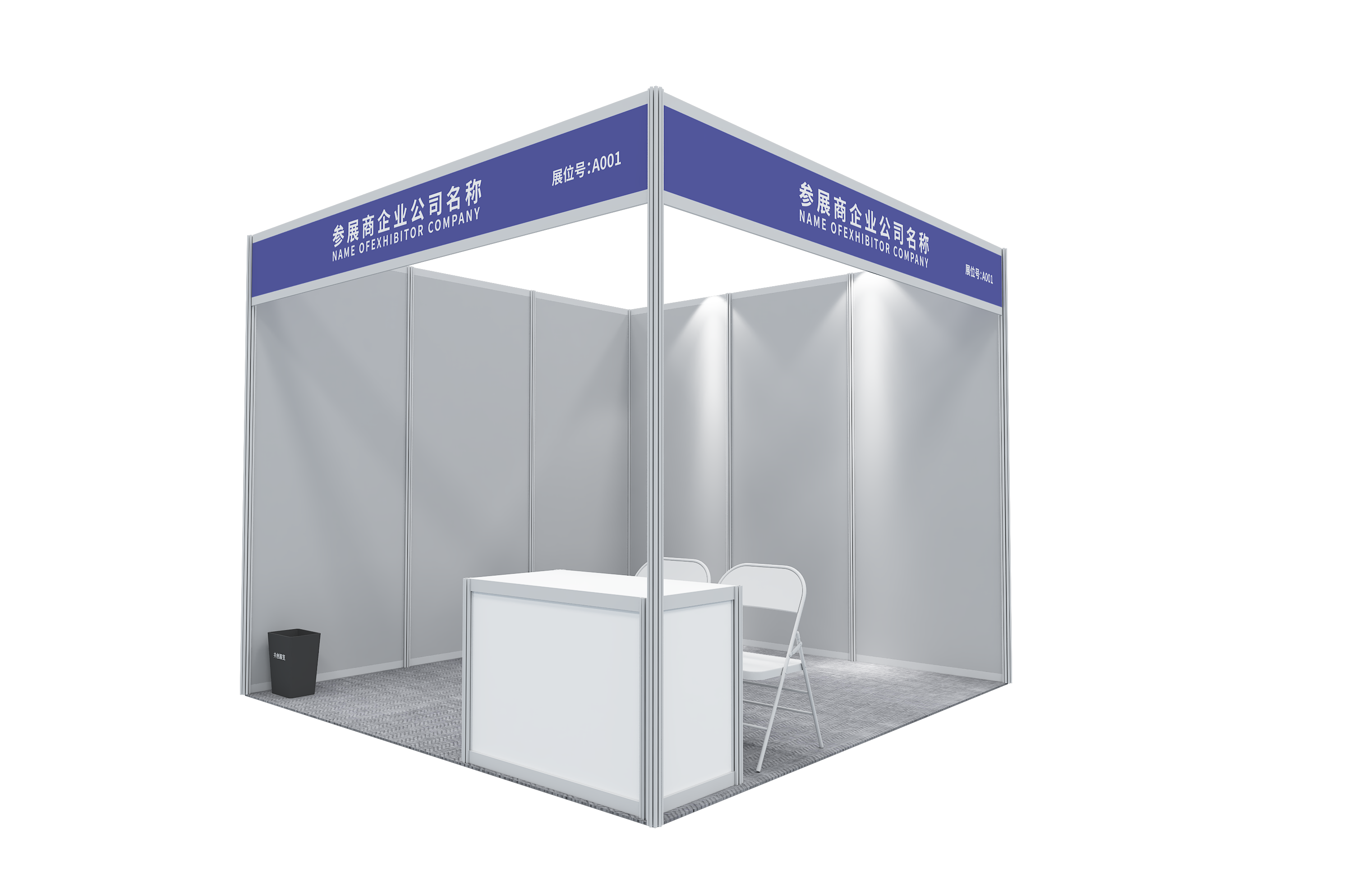 展位配置:高度4米、展位海报画面包含:(形象展区背板画面、展位围板画面、灯箱画面、楣板画面、桌子画面)一张咨询桌、一张玻璃圆桌、六把折椅、一盆绿植、地毯、纸篓、两盏射灯、220V电源插座;注:所有画面需要展商自行根据尺寸设计,源文件打包发到主办对接人员。